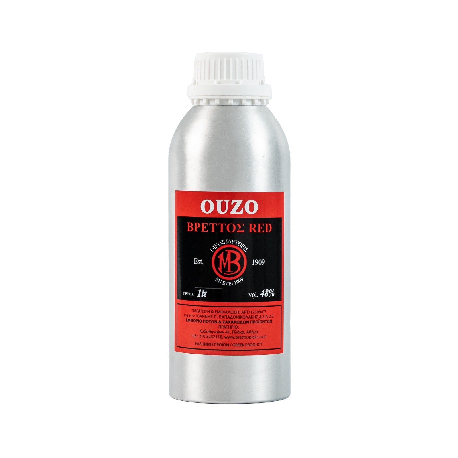 Βρεττός Ούζο Κόκκινο, Μεταλλικό Μπουκάλι, 1lt-48% Αλκοόλ