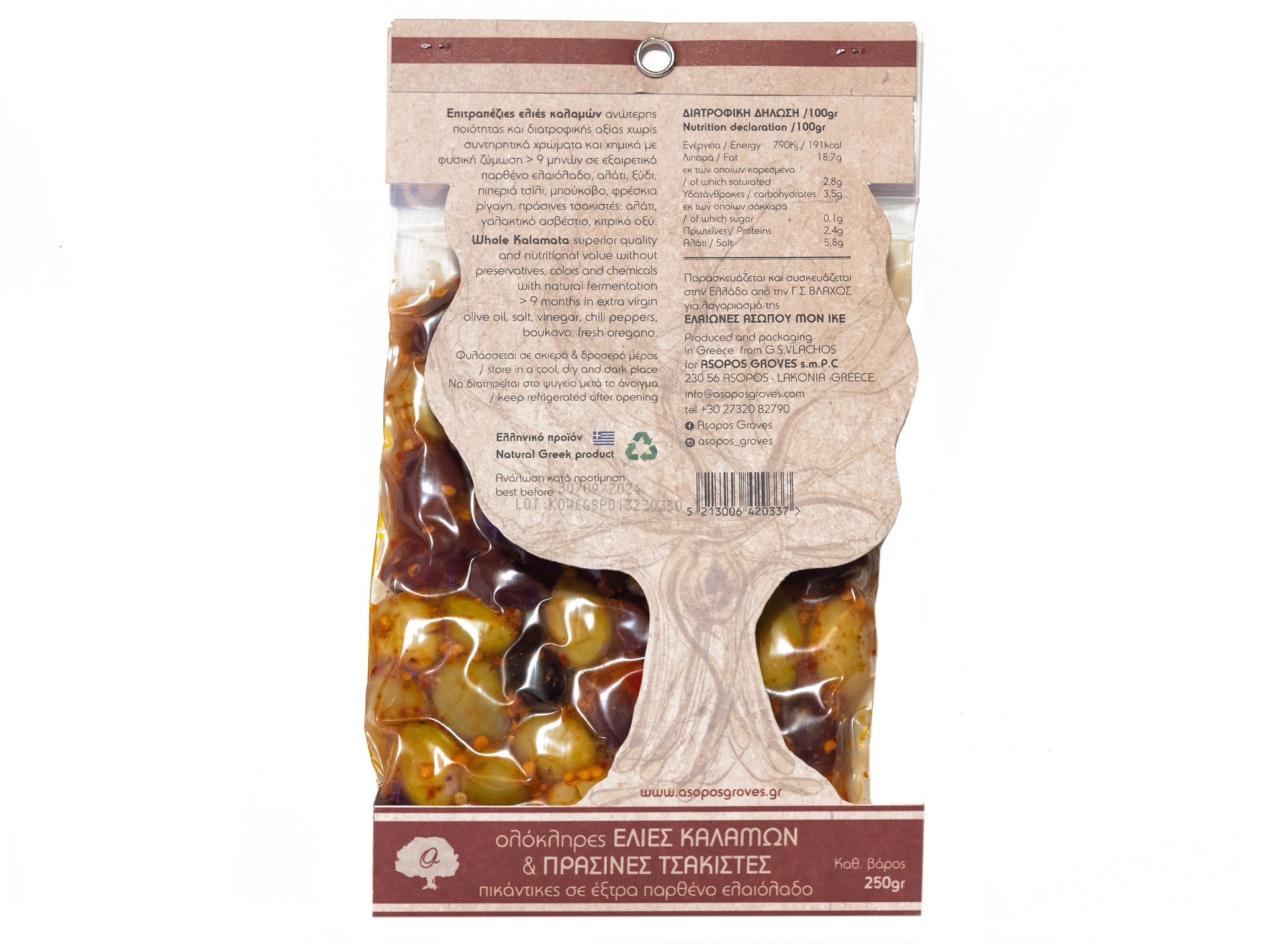 Asopos Groves Kalamon & Green Cracked Olives Spicy 250gr
